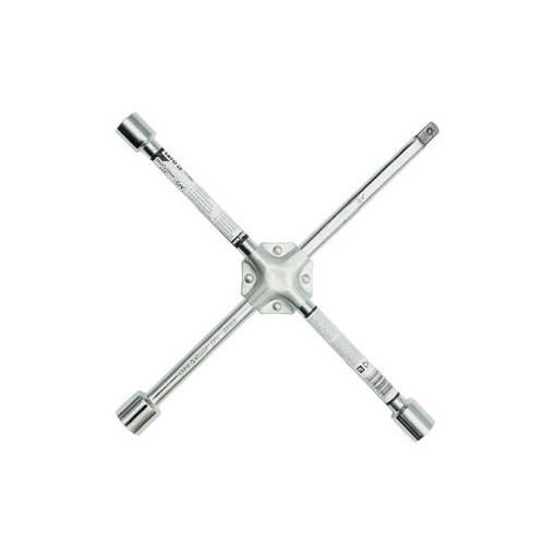 Posiada 4 ramiona z nasadkami, dostosowanymi do wszystkich sześciokątnych, metrycznych rodzajów śrub i nakrętek stosowanych w samochodach osobowych i lekkich dostawczych.