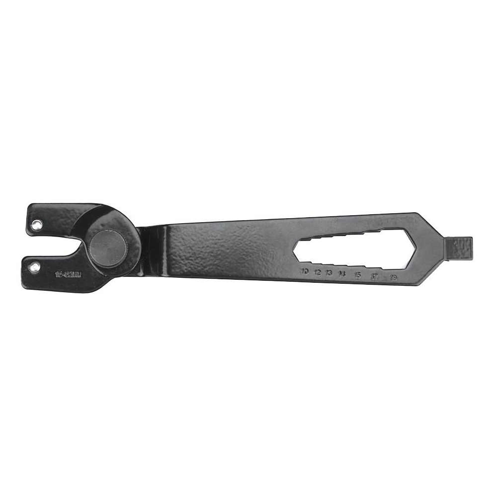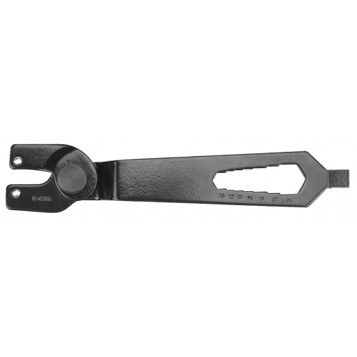 Dzięki regulowanemu rozstawowi szczęk pozwala na dokręcanie i odkręcanie nakrętek mocujących tarcze w szlifierkach kątowych o średnicach od 115 do 230 mm.