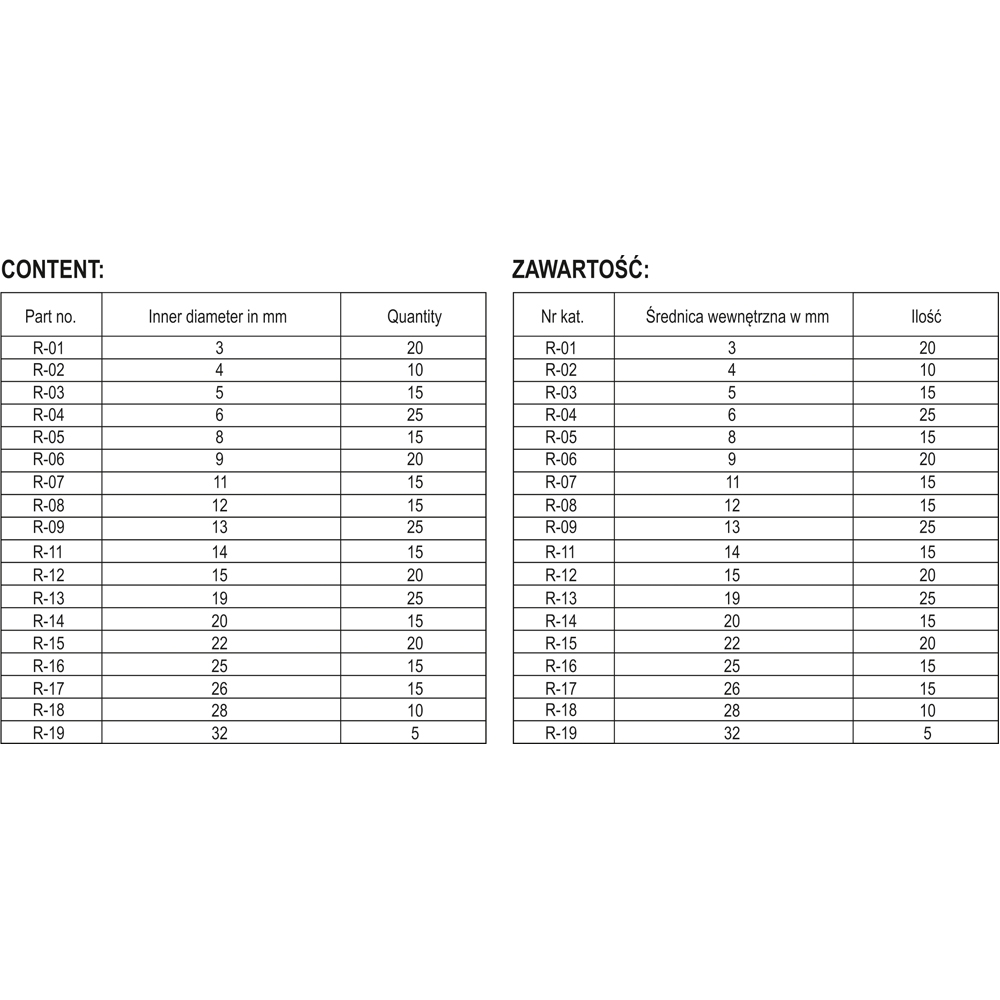 Zestaw zawiera mix 18 różnych rozmiarów. Całość w solidnym organizerze.