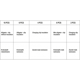 Zawartość opakowania to 28 sztuk krokodylków o różnej wielkości, izolowanych i nieizolowanych.