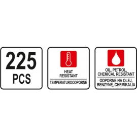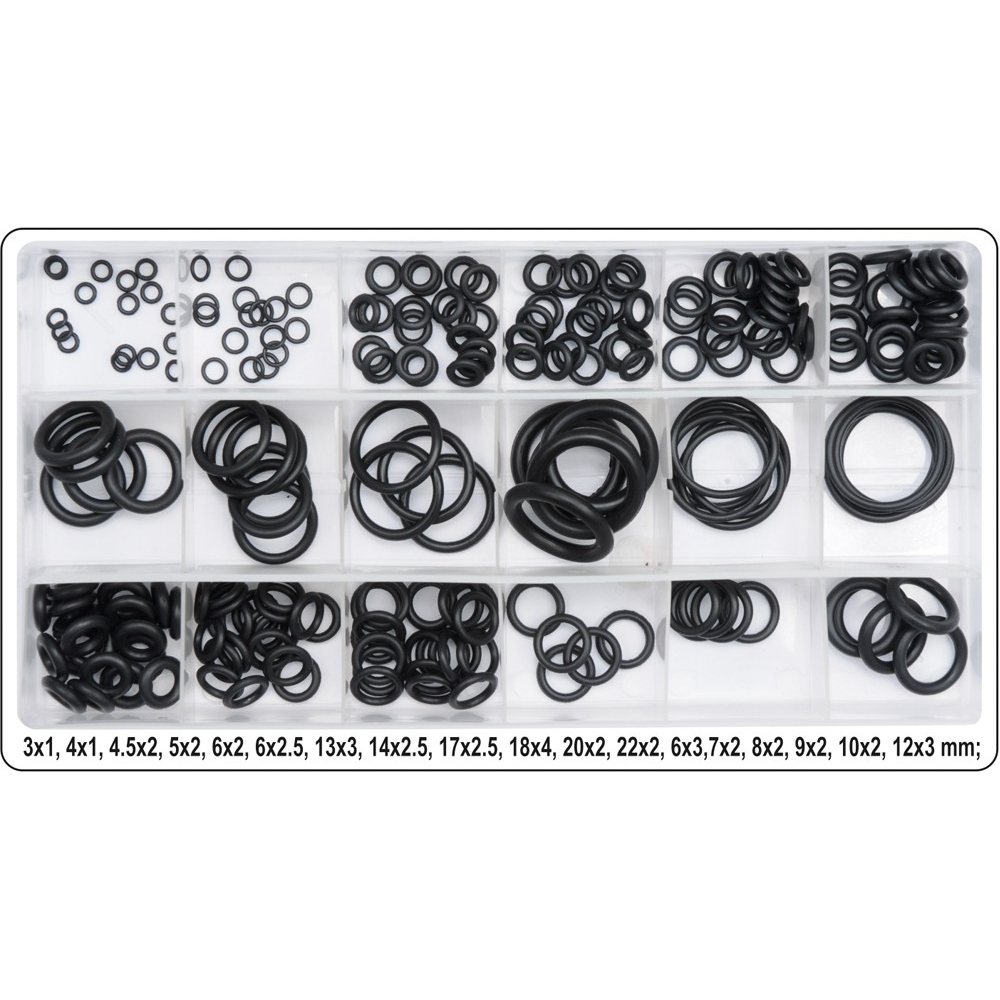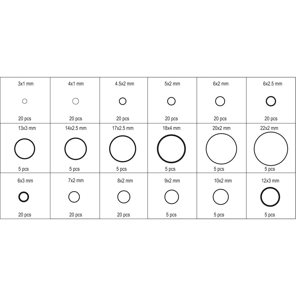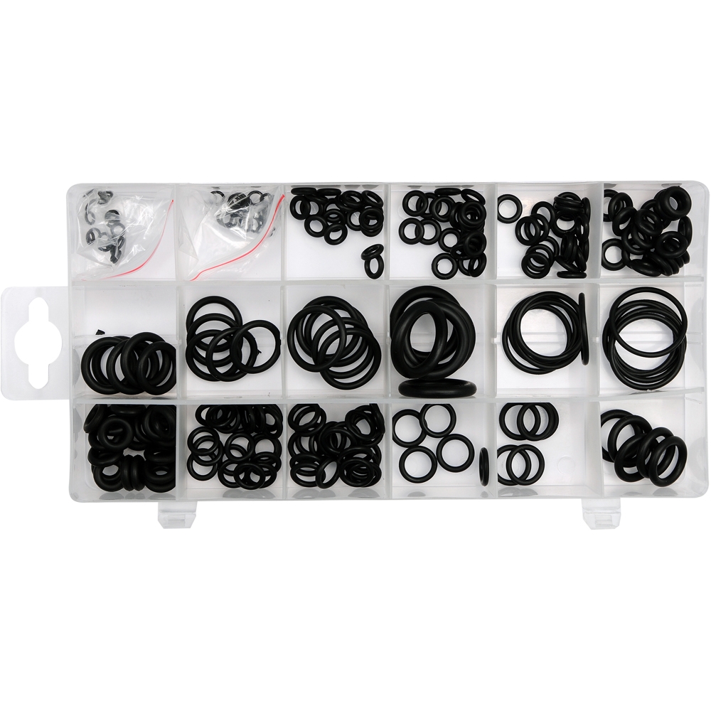 Praktyczny zestaw 225 O-ringów gumowych. Zawiera mix 18 różnych rozmiarów.