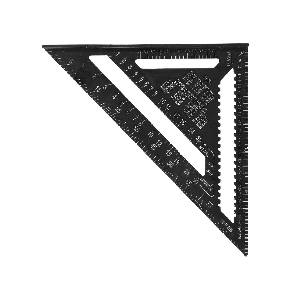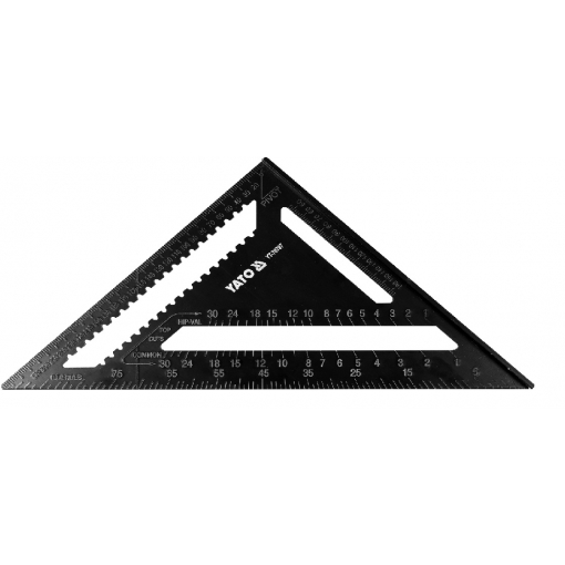Materiał stop aluminium powierzchnia lakierowana naniesiona trwale podziałka milimetrowa i calowa oraz specjalistyczne podziałki kątowe przeznaczone do pomiarów wykonywanych przy pracach ciesielskich i dekarskich.