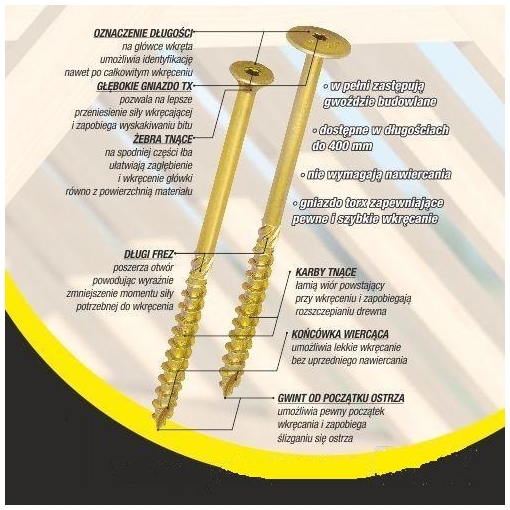 Wgłębienie typu Torx, ułatwia wkręcanie w trudne podłoża dzięki specjalnej konstrukcji - frezowany grot .