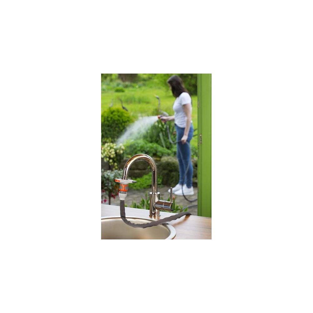 Adapter do kranów wewnętrznych marki GARDENA pozwala zapomnieć o ciężkich i pełnych wody konewkach. Wystarczy podłączyć adapter do kranu z wodą, na przykład w kuchni czy w łazience. Teraz możesz przyłączyć wąż ogrodowy i pociągnąć go wprost do kwiatów i innych roślin (lub do brodzika!) na balkonie, tarasie czy werandzie. Montaż jest szybki i prosty. Nie potrzeba żadnych narzędzi poza dołączonym do adaptera kluczem. Po zamocowaniu gwintowanego adaptera na kranie nakłada się na niego przyłącze kranowe. Należy wcisnąć pomarańczową stronę zatrzasku, aby zablokować przyłącze i dołączyć wąż. W celu otwarcia - wcisnąć szarą stronę zatrzasku. Original GARDENA System to nie tylko stabilne i szczelne połączenie, ale również możliwość podłączenia do węża dowolnej końcówki zraszającej. Adapter pasuje do wszystkich standardowych kranów z gwintem wewnętrznym M 24 x 1 oraz zewnętrznym M 22 x 1 (nie jest przeznaczony do bezciśnieniowych i niskociśnieniowych podgrzewaczy wody).