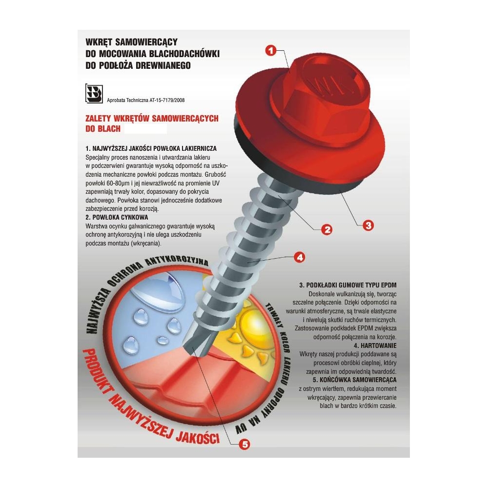 Wkręt samowiercący do mocowania blachodachówki w podłożu drewnianym ,