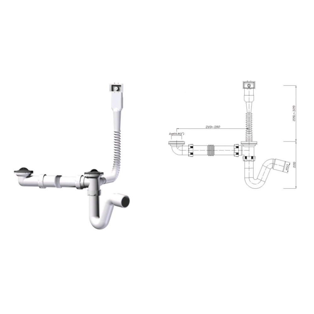 SYFON ZLEW 2-KOM FI 50, SITKO METAL PRZELEW