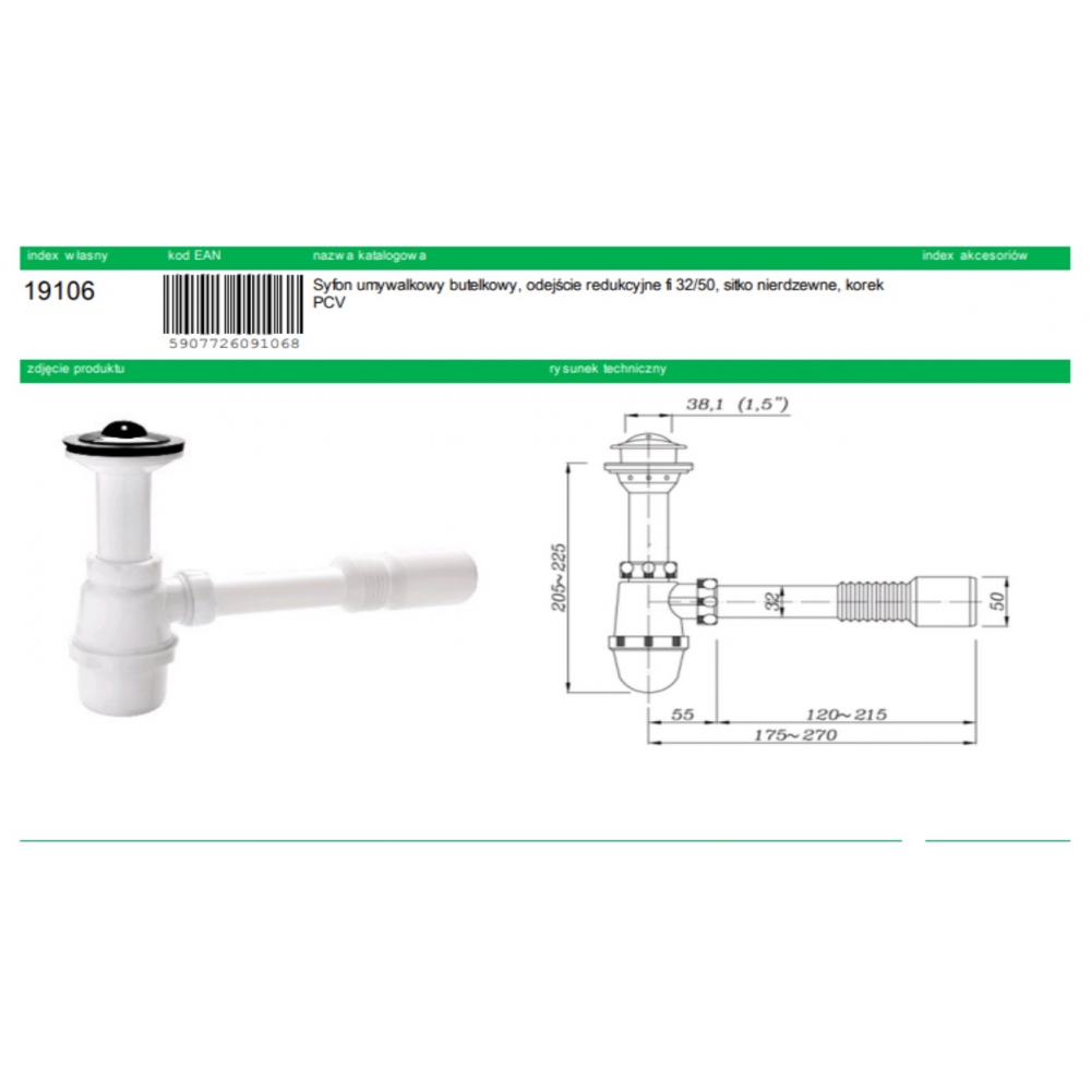 SYFON UMYW.BUTELKOWY 32/50 RED. SITKO METAL KOREK