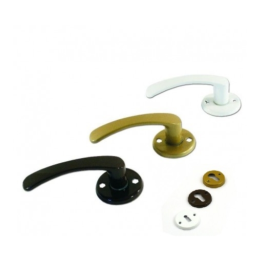 Klamka malowana na szyldzie okrągłym Klamka drzwiowa aluminiowa na szyldzie okrągłym + szyld dolny . Dostepne kolory: biały, brązowy, czarny, złoty.