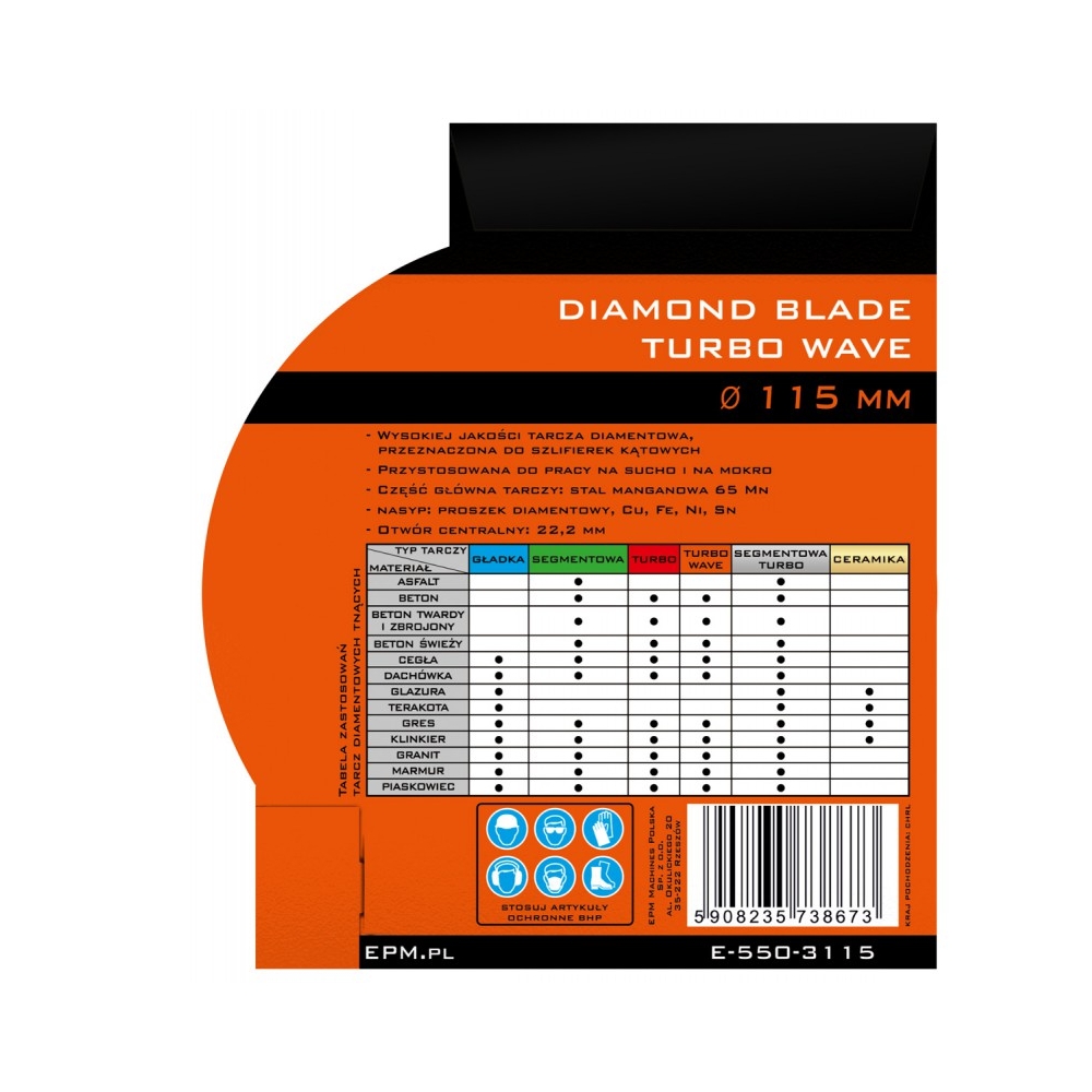 Tarcza diamentowa TURBO WAVE do cięcia materiałów na sucho i na mokro