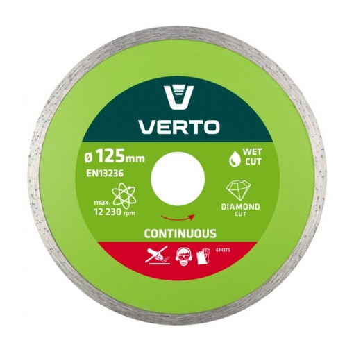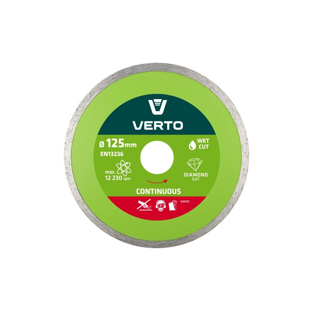 Tarcza diamentowa pełna VERTO (nr ref. 61H3T5) o średnicy zewnętrznej 125 mm, przeznaczona do precyzyjnego cięcia elementów ceramicznych, takich jak terakota, gres, granit, marmur.