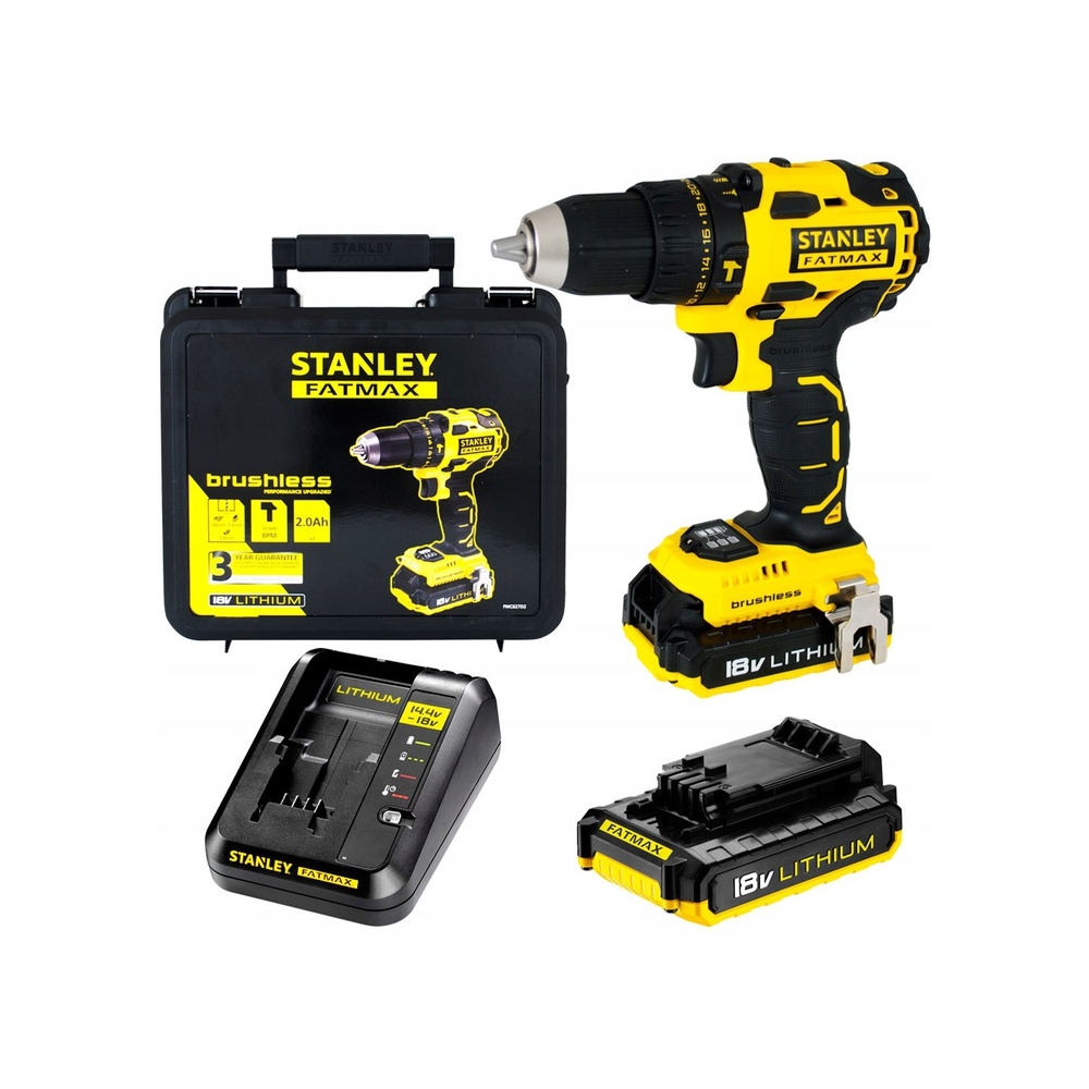 Wiertarko-wkrętarka STANLEY FATMAX 18 V dostarczana z dwoma akumulatorami Li-Ion o pojemności 2.0 Ah